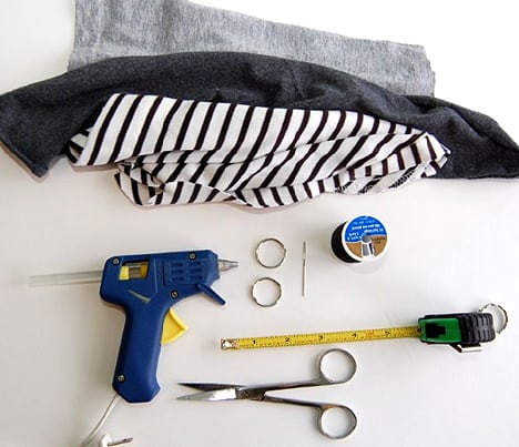 I love using simple materials to make something fun and innovative. The supplies for this bracelet DIY are really basic, so there’s a REALLY good chance you own all of them already. I mean, who doesn’t have a stack of soft old T’s you can’t wear outside of the house, but love to much to toss in the rag pile?